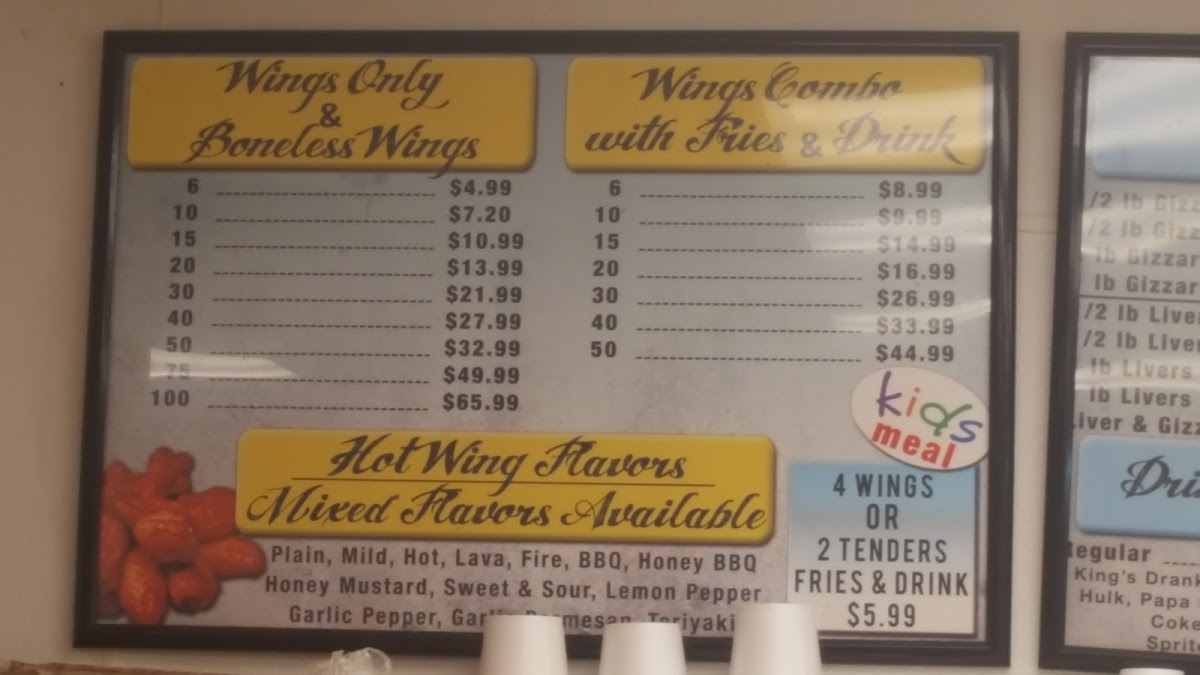 Kings Wings Menu